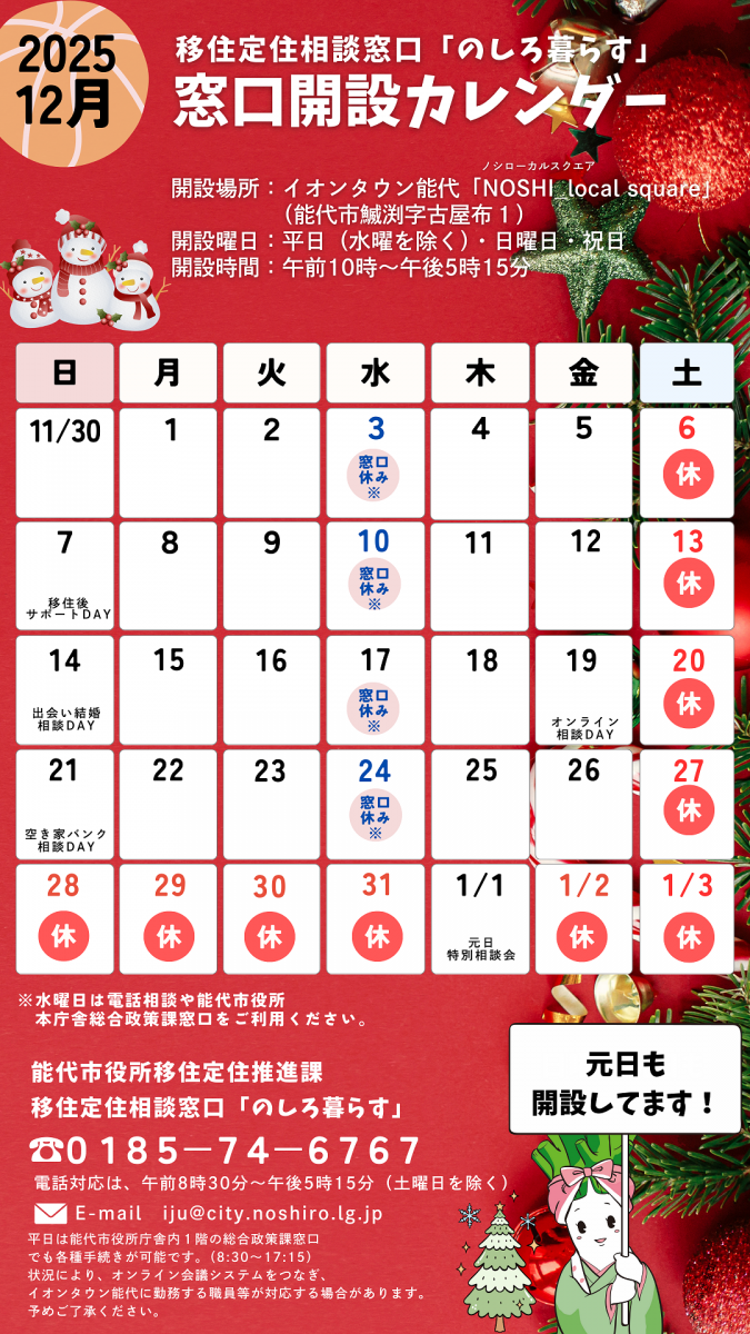 移住定住推進課は、イオンタウン能代内のNOSHI_local square(ノシローカルスクエア)にあります。能代市移住定住相談窓口「のしろ暮らす」のメイン窓口も同所で業務を行っていますので、ご利用ください!