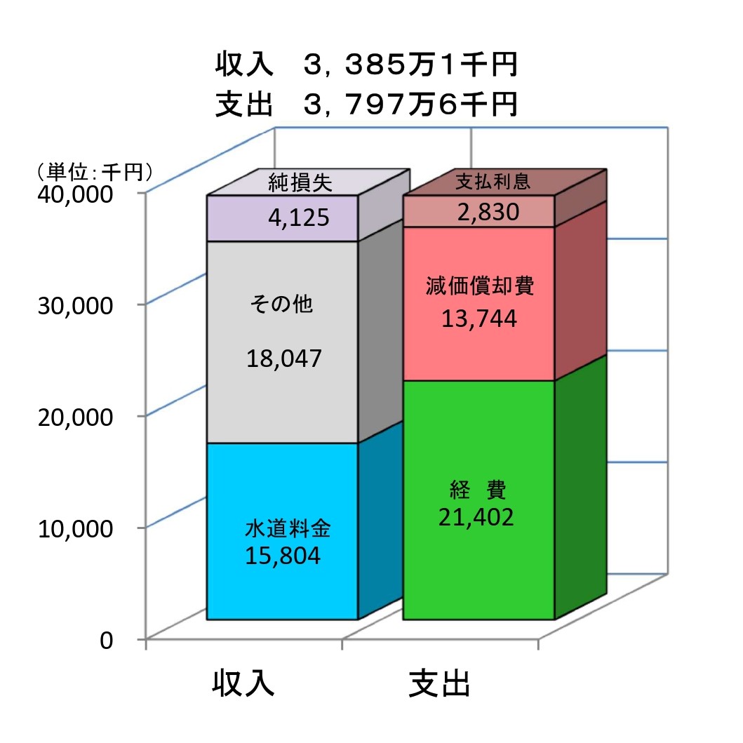 水道水を作り、各家庭や事業所へ給水するまでの費用とその財源です。主な収入は水道料金です。