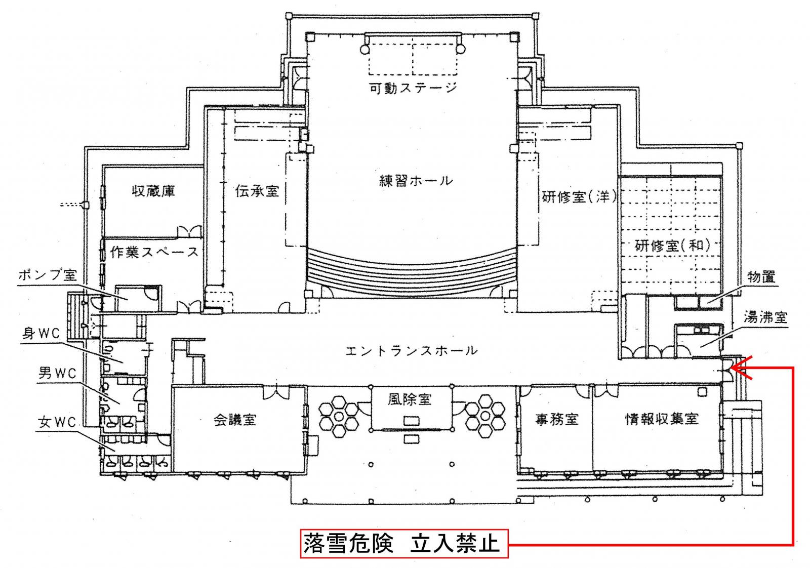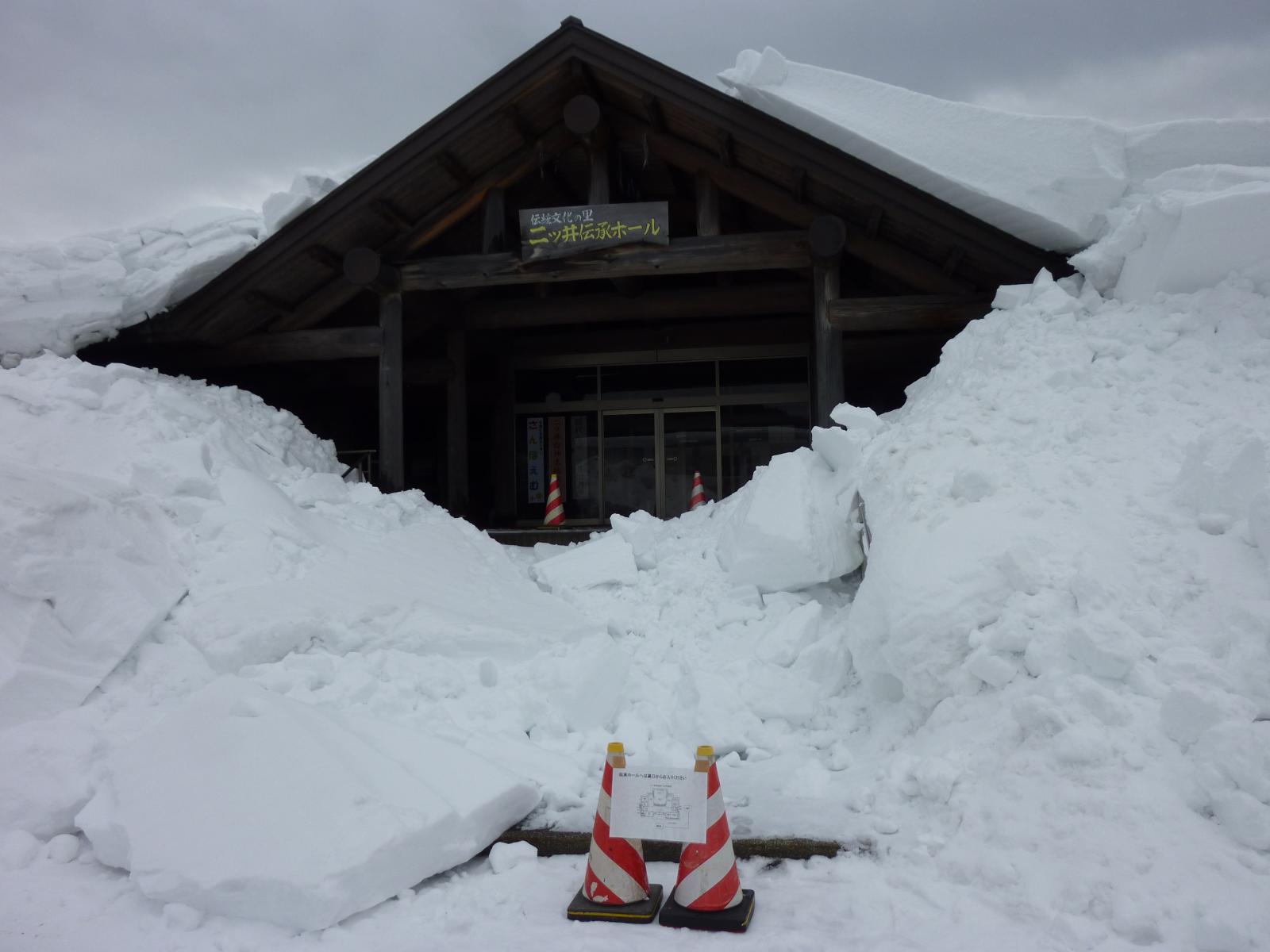 二ツ井伝承ホール 出入口封鎖のお知らせ 屋根からの大量の落雪によりたいへん危険なため、 現在二ツ井伝承ホールの出入口を封鎖しております。 二ツ井伝承ホール(二ツ井図書館・さんぽえむ)へ御用の方は、 職員通用口からお入りください。 関連コンテンツ 二ツ井伝承ホール 二ツ井伝承ホール