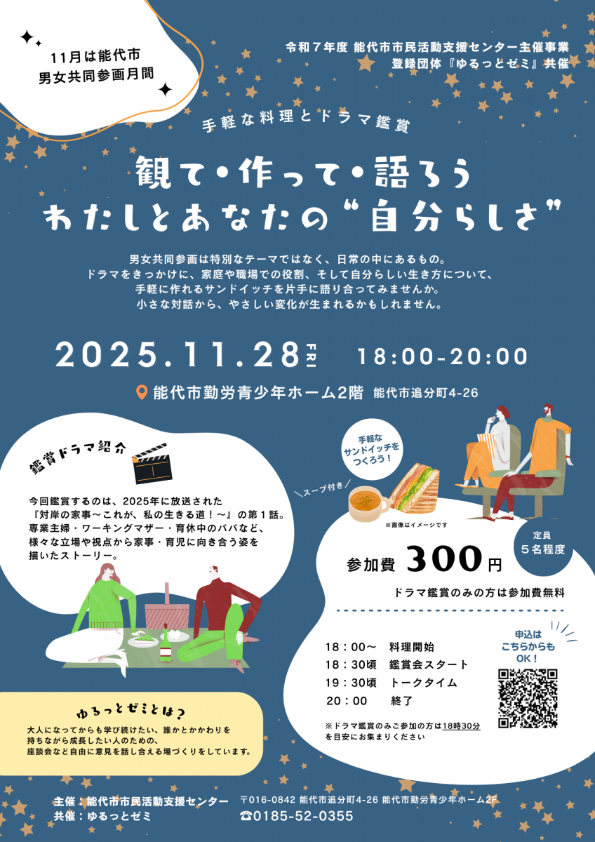 参加費:300円 ※ドラマ鑑賞のみの方は参加費無料