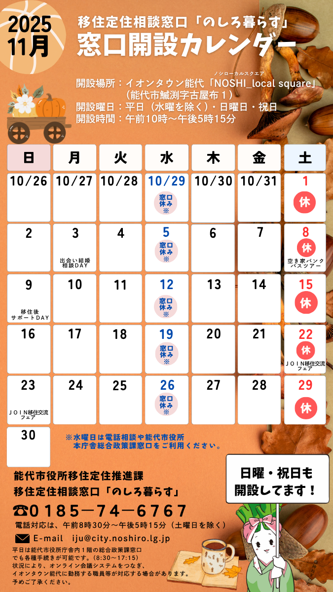 移住定住相談窓口「のしろ暮らす」のご案内