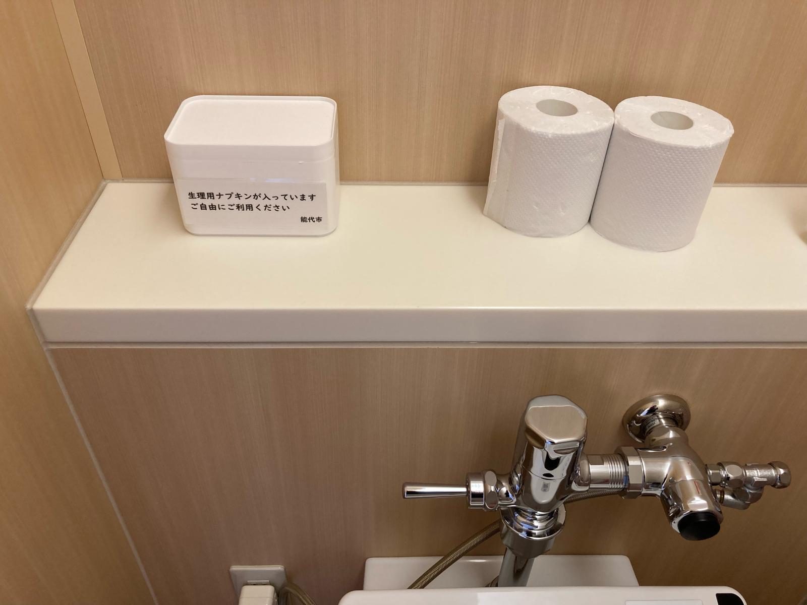 令和7年7月より、能代市役所本庁舎及び二ツ井庁舎に生理用ナプキンを設置しました。・急な生理でお困りの方…