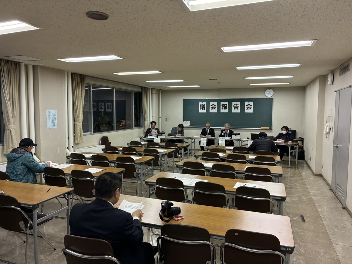 令和7年11月20日(木曜日)午後6時から、下記3会場で議会報告会を開催し、13名の皆様にご参加いただきました。各班の議会報告会実施報告書、当日会場で配布した資料、アンケート及びアンケート結果は「関連ファイル」からご覧ください。