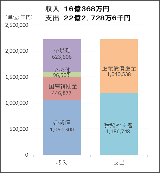 下水道施設を建設・改良するために必要な費用とその財源です。